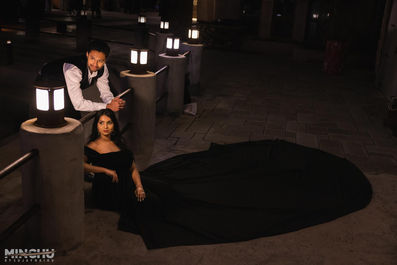 The pre-wedding shoot of Inchara & Pruthvi was an exciting 2-day event in Dubai. We captured their love story at iconic locations like the Burj Khalifa, Marina Bay, and Al Seef. The cute couple loved how we styled and meticulously planned the shoot, ensuring each moment was perfect. The combination of these stunning backdrops and their chemistry resulted in beautiful and memorable images.