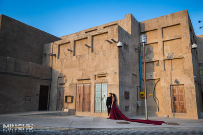 Nancy & Mohamed from Dubai were a striking couple who wanted a photoshoot from us. Within a week, we quickly planned and traveled to Dubai. We chose Al Seef for the shoot, a place built to resemble old Dubai, which we thought would be perfect to showcase the chemistry of this beautiful couple. The historic charm of Al Seef provided an ideal backdrop, enhancing the timeless elegance of Nancy & Mohamed's love story. The resulting images perfectly captured their unique connection against the rich, cultural setting.